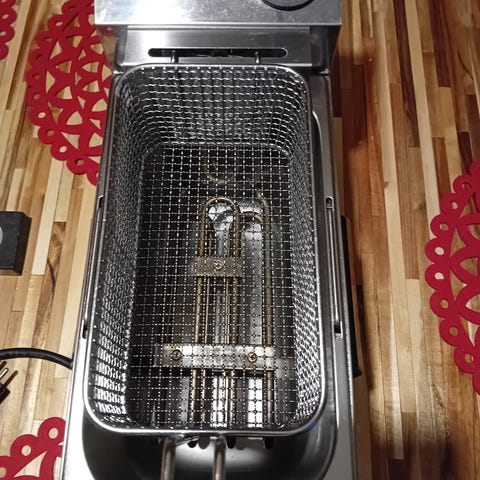 Rasvakeittimen allas eristetty lämpöhäviön estämiseksi. Pohjakallistus helpottaa öljynpoistoa ja puhdistusta. Keittimessä 2 ritilää, joista toinen vastuksen alla. Se toimii myös suodattimena, helpottaa huomattavasti puhdistusta ja estää öljynpoistohanan tukkiutumisen. Toinen ritilä on vastuksien päällä. AISI304-ruostumaton teräs takaa myös helpon puhdistuksen. Ruostumaton lämmitysvastus nostettava altaan puhdistamista varten.