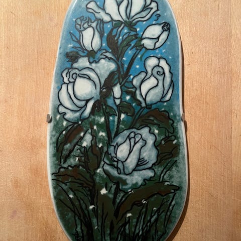 Arabia Heljä Liukko-Sundström seinälaatta 12x12 cm Kaislikossa tuulee (1982). Signeeraus H. L-S.