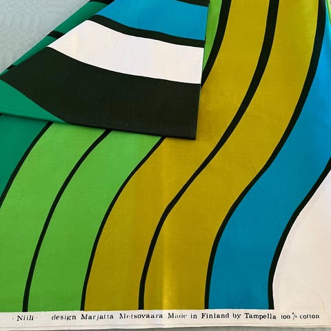 Tampella, Marjatta Metsovaara 70-luku, Talismaani kuosinen lappisatiini kangas. 100% puuvilla.