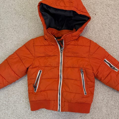 H&M toppatakki kokoa 98 tilavilla taskuilla. Helmassa kiristysnarut ja huppu irrotettavissa. Peukaloille hihoissa omat paikat. Muutaman kerran pidetty.
