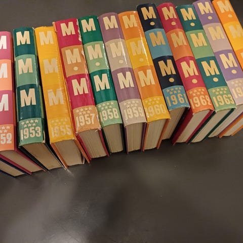 Hyväkuntoisia MMM kirjoja 12 kpl 1975-1999.