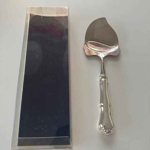 Myynnissä kuvan käyttämätön Chippendale hopeinen (HOPEA 839 Z8) juustohöylä, jonka pituus on n. 22,5 cm ja paino on 52 g. Sen teräosa on terästä. Höylä ei ole ollut käytössä eikä siinä ole kaiverruksia. Tässäpä hieno löytö vaikkapa lahjaksi!