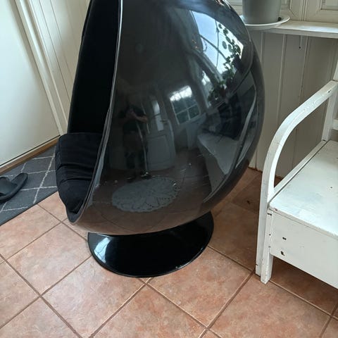 Ihana klassikko, Parolan Rottingin pallotuolin runko. Rungon punos on parista kohtaa purkautunut (kuvissa näkyy), muuten ehjä.