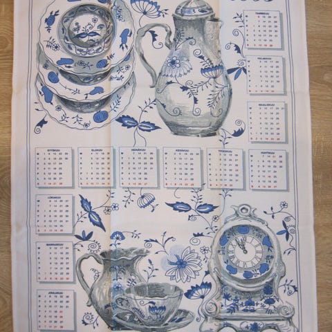 Vuoden 1987 alppikukkia, käyttämätön kalenteripyyhe, voi laittaa seinällekin, kukat saksaksi ja latinaksi, kuukaudet saksa, ranska, englanti ja italia