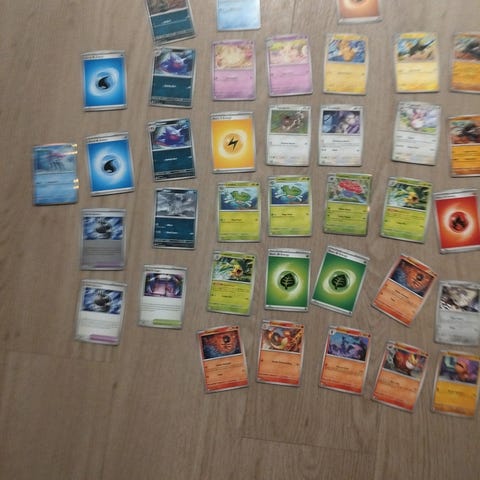 Myydään kuvan ruohotyypin Pokémon-kortit (38 kpl) + Energy-kortit (10 kpl). Kaikki erinomaisessa kunnossa, kuin uusia. Pineco, Karrablast ja Caterpie ovat kimaltelevia kortteja (näkyy huonosti kuvassa).