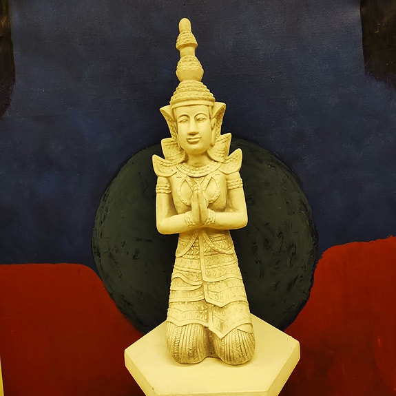 Buddha on valmistettu kipsistä ja kauniisti käsin maalattu ja viimeistelty.