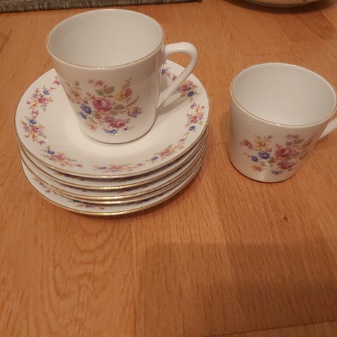 Arabia Ruusu kahvikuppi, asetti, lautanen 6 kpl