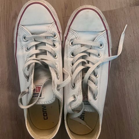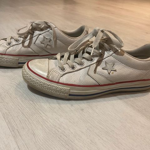 Nahkaiset, lämminvuoriset Converset talvikäyttöön. Ruskeaa nahkaa. Koko 4 / 36,5. Vasemman kengän ulkopohja irvistää, nitisee kävellessä. Korjaantunee liimaamalla. Muuten ok kunto.