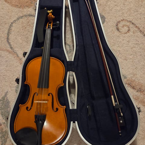 Myydään seuraavalle soittajalle meillä pieneksi jäänyt kaunissointinen Yamahan 1/8 viulu. Yamahan oppilasviulusarjan aatelia (7 series). Mukana Gewan hiilikuitu jousi hopea/helmiäiskoristein koossa 1/8, olkatuki, hartsia, kova kuljetuslaukku kosteusmittarilla. Laukussa on kaksi olkahihnaa, joten saa helposti kannettua reppuna.