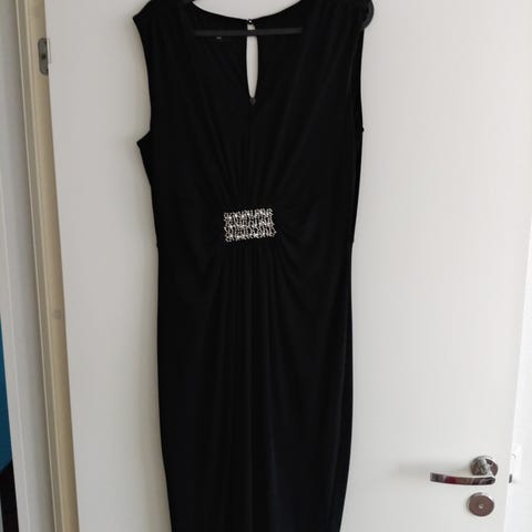 Musta yli polvien tuleva juhlamekko.