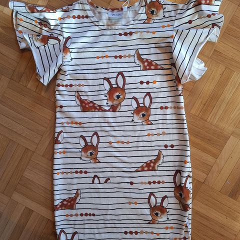 Myydään kuvanmukainen siistikuntoinen suloinen mekko. Koko 128-134 cm. Taimi. Hinta 12 e.