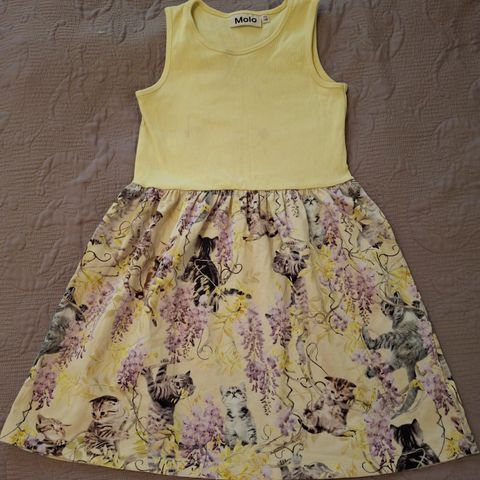 Myydään kuvanmukainen siistikuntoinen suloinen mekko. Trikookangasta. Muutamassa saumankohdassa hieman venymää. Koko 122-128 cm. Molo. Hinta 12 e.