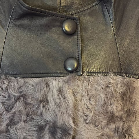 Uniikki nahkajakku italialaista Siste's merkkiä erinomaisessa kunnossa (käytetty vain kerran). Pehmeän aidon nahan lisäksi jakussa on osioita jotka on tehty pitsi- sekä trikookankaasta. Trikookangas tekee jakusta hyvin istuvan.