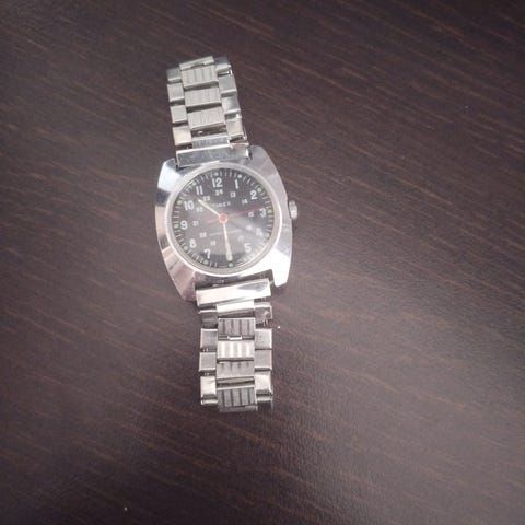 Otsikon mukainen kello, aftermarket president ranneke kiinni. Kvartsikoneisto. Indiglo taulun valaistus nupista.