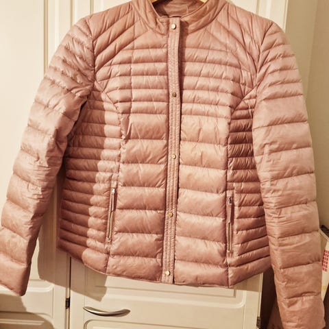 Beaumont kevytvanutakki, koko 42, väri pinkki. Mitta kainalosta kainaloon 55 cm, taskujen yläpuolelta vyötäröltä 49 cm ja helmasta 57 cm, pituus 63 cm. Mukana pussi, jossa takkia voi säilyttää esim. matkan aikana. Takki käyttämätön! Postitus onnistuu!