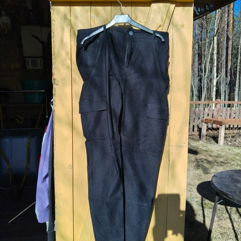Housut koko 42. Vastaa kokoaan. Merkki house. Kunto erinomainen. Mittoja näkyy kuvissa. Vyötärön takaosa joustaa. Venyttämättä vyötärö reilu 40cmx2. Venytettynä lähes 50cmx2cm.