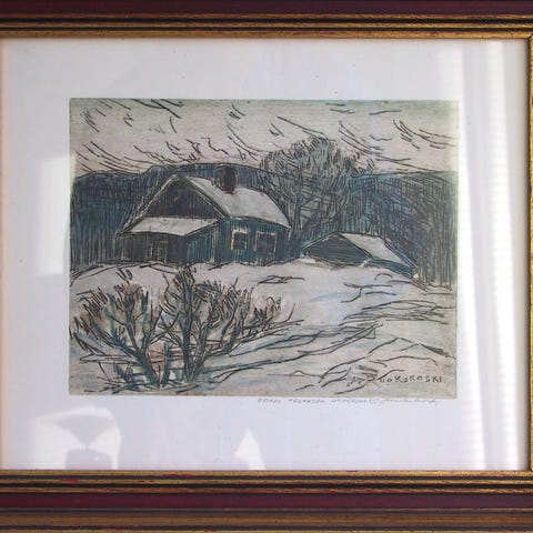 Myydään taidegraafikon Antti Niemen tekemä Kauppaneuvoksen lohi.