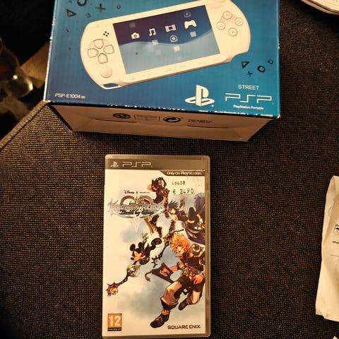 Myydään vanha PSP malli 1004 muistitikulla jossa Final Fantasy 9 mukana. Lisäksi mukaan kasa pelejä ja umd elokuvia. Kaivettu varastosta ja pahimmat lian putsattu pois. Akunkestoa parin täyteenlataus - täyspurku (peli käynnissä) testauksen perusteella 4,5 - 5 h. O painikkeesta yksi kiinnityskulmista rikki joten heiluu, muttei testauksen perusteellla vaikuttanut toimivuuteen tai painikkeen rekisteröintiin.