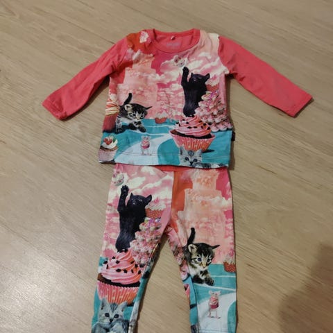 Vaaleanpunainen t-paita kissan kuvalla.