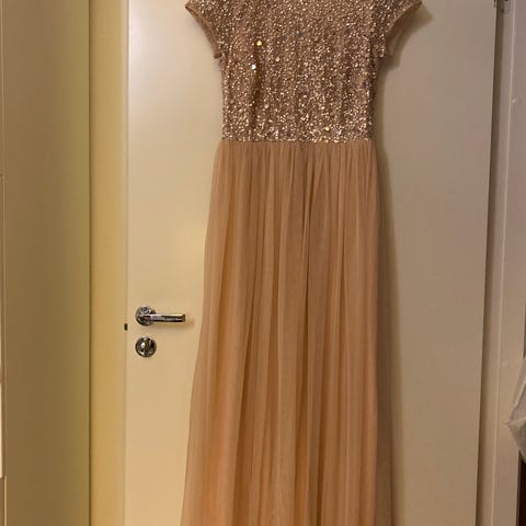Upea persikanvärinen iltapuku vaikka kesähäihin kaasolle,