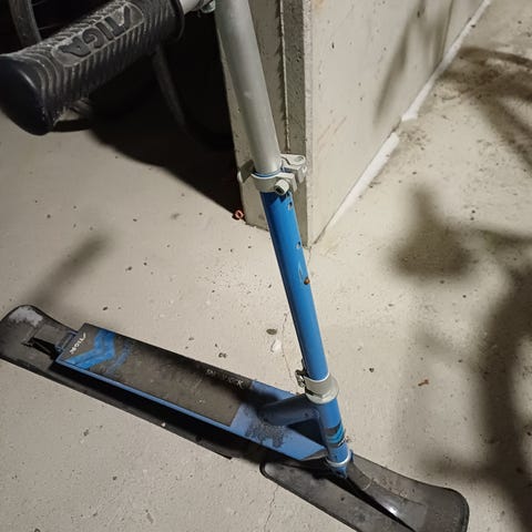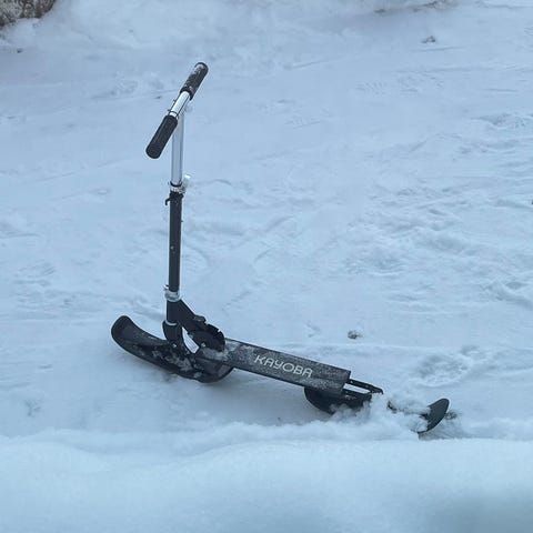 Lasten lumiskootti. Vähän ruostettakin löytyy.