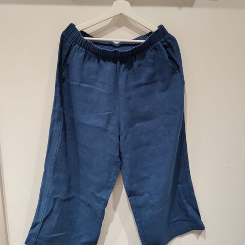 Linenfox OCEAN pellavahousut, väri beige, koko L: vyötärö (tasossa mitattuna) 38 cm, haarakorkeus 34 cm, lahkeen sisäsauma 62 cm, koko pituus 94 cm. 100% pellavaa, kyseessä nämä linenfoxclothes.com/women/pants/ocean-linen-trousers-natural-grey/ kustomoituna hieman löysemmällä vyötäröllä. Erinomainen kunto.