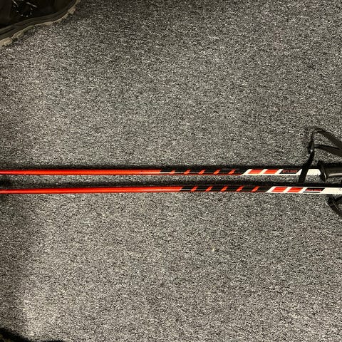 Kovassa käytössä olleet laskettelusauvat, mutta ehjät. Pituus 100 cm. Maalipinnassa ainoastaan jälkiä.