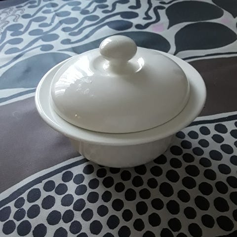 Myydään Arabian Arctica-sarjan sokerikko kannella, korkeus 5,5cm, halkaisija 13cm.