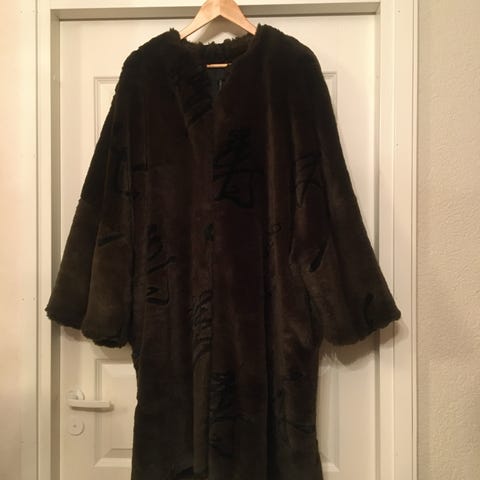 Kaunis tummanruskea tekoturkis/takki kokoa 44, pituus olkapäältä helmaan 79 cm. Merkki Pierre Salomon.