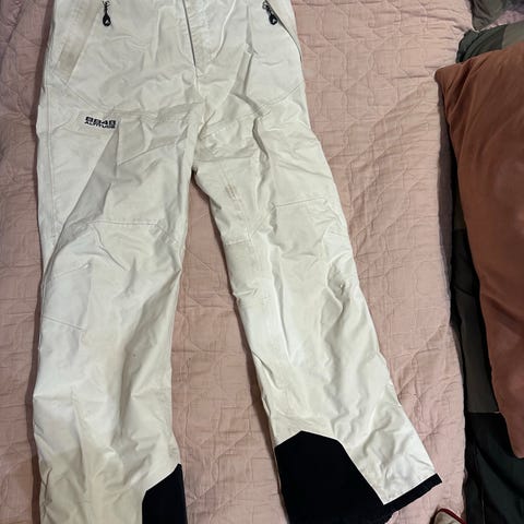 Käytetyt, kulumaa lahkeensuissa, tekstiosassa, pehvassa. Takataskun vedin hävinnyt. Ovat suht väljät. Koko L. Vyötärö säätyy, hengarilla puolikas n. 48. Reidestä puolikas 33. Käytetty lautaillessa miehellä n. 190/85-90kg. Mmm