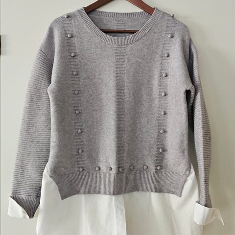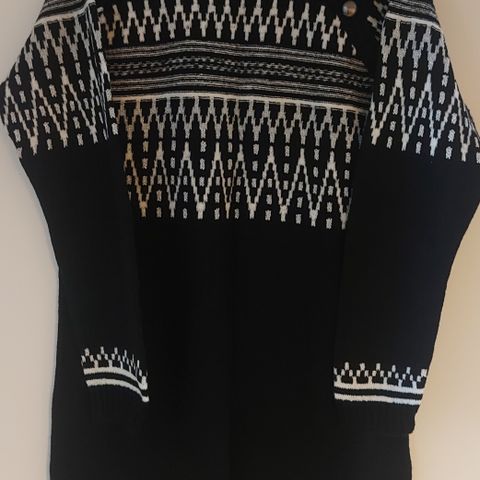 Mitat: kai-kai 62cm, vyötärön ymp. 114cm, olka-helma pit. 76cm, hihan pit. 42cm.
