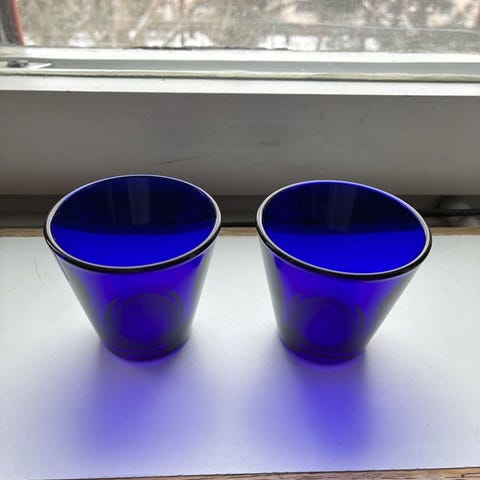 Iittala Kak Franck snapsilasit/shottilasit Kartio 2 kpl koboltinsiniset. Uudenveroiset, tarrat paikoillaan.