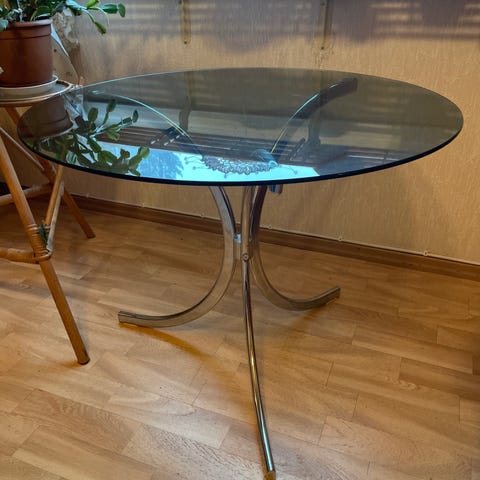 Myynnissä siis pelkkä lasi. Ei pöydän jalkaa eikä mitään muutakaan kuvassa näkyvää.