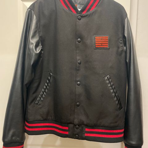 Billebeinon tekonahkahihainen takki. Hyvännäköinen, muuten siisti mutta tekonahassa kulumaa.