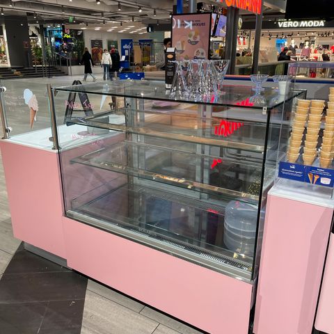Näyttävä omakoneinen kaarevalasinen konditoriavitriini. Vitriinissä on syvät lasihyllyt, jotka mahdollistavat runsaan esillepanon. CW R-mallistoa voi jatkaa eri kokoisilla CW R- ja CW-mallistolla tilan tarpeen mukaan. Myös mittatilaustyönä saatavilla eri kokoisina sekä 45 asteen kulma vitriinillä. Lisävarusteena saatavilla muotoiltu MDF-alaverhoilu sivuille ja eteen, myös kassa-taso.