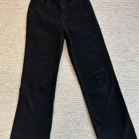 Korkeavyötäröiset leveälahkeiset farkut. Koko 34.