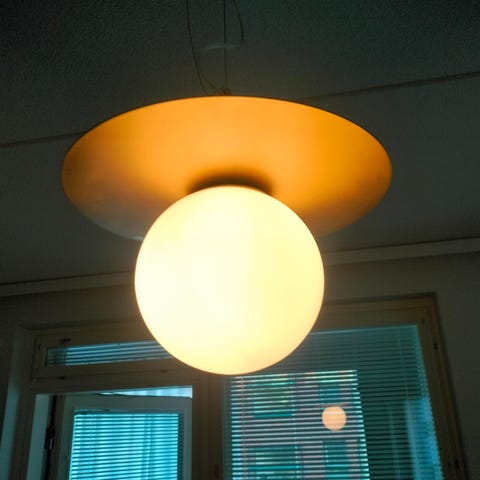 Audo Copenhagenin ruotsalaisen muotoilijan Jonas Wagellin suunnittelemia kattolamppuja yhteensä 4 kappaletta. Materiaali suupuhallettu lasi ja messinki. Halkaisija 23 cm ja korkeus 33,5 cm. Himmentävä. Tarvittaessa mukaan kattokiinnityskisko. Erikseen 130 euroa tai 450 euroa kaikki yhdessä.