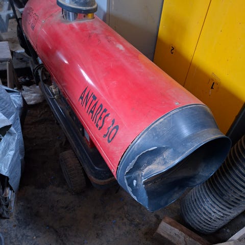 Iso 45 kW:n diesel-käyttöinen hallilämmitin. Otettiin pois käytöstä sähkökytkimen vian vuoksi. Helppo projekti.