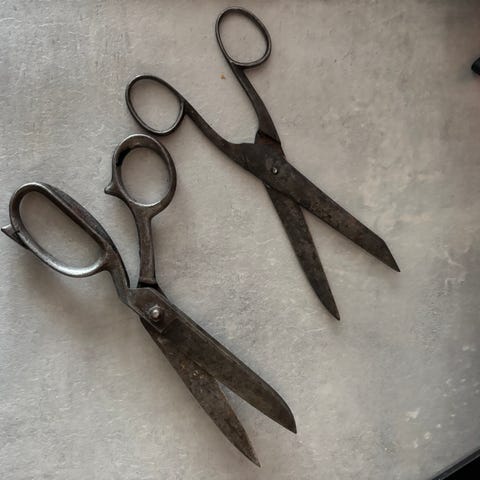 4 kappaletta vanhoja saksia. Tekstit Richards Frip Frap Sheffield England, Paul Special, Solingen ja Fiskars. Kunto mielestäni kaikissa suhteellisen hyvä.