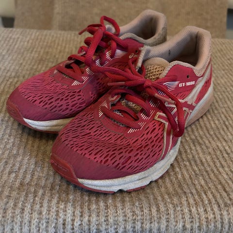 Myydään Asics-lenkkarit koossa 35. Lenkkareita käytetty runsaasti ja niissä kulumaa lähinnä oikean kengän ulkosyrjällä, jota korjattu siististi muutamalla ompeleella. Edelleen kuitenkin siistit ulkoiluun tai vaikka päiväkotiin. Pesty käytön jäljiltä.