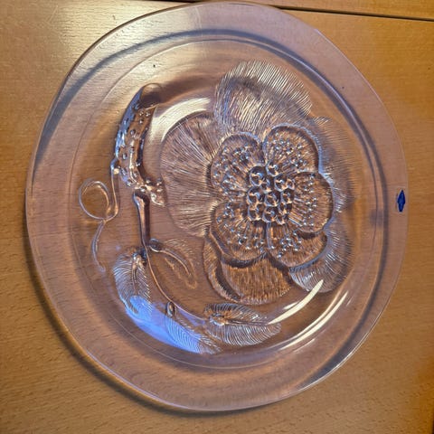 Myydään Nuutajärven Lasin Pioni-lasilautanen, koko 21 cm.