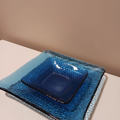 Myydään Pentik keraaminen aamiaissetti, sini-vaaleavärinen lautanen, koko 17 x 28 cm ja muki.