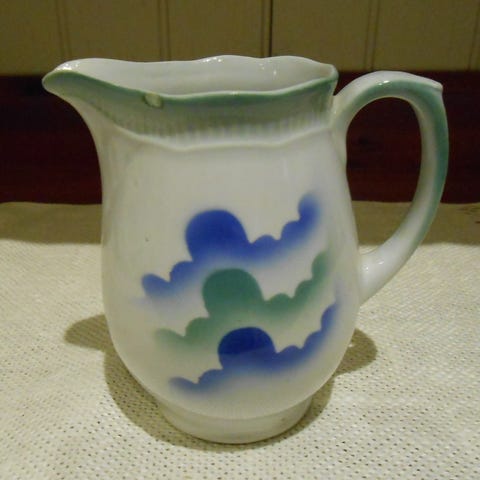 Myydään Arabia Pilvi-kaadin, sinivihreä pilvi-koriste. Mitat: korkeus 13 cm, halkaisija 7 - 9,5 cm, tilavuus 0,5 litraa.