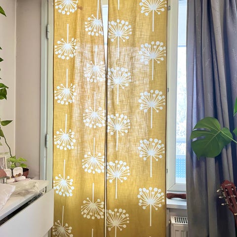 Myydään kuvassa näkyvä sininen Kotikulta verho/kangas koko:140x240cm. Hinta:12€.