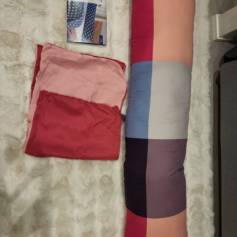 Myydään harmaa vartalotyyny. Hinta 13 euroa.