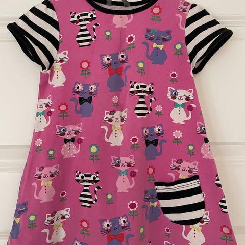 Ihana leopardimekko ohutta puuvillatrikoota todella hyvässä kunnossa.joustaa.edessä sydän pinkeillä paljeteilla.