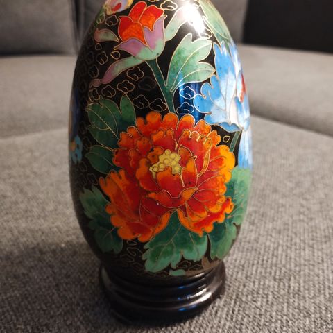 Myydään vanha, upea, käsintehty/maalattu, käyttämätön violetti/sininen Cloisonne soluemali ripustettava koristemuna. Koko K11,5cm. Munassa emalointi ja päällä kultareunaiset koristelut. Näyttävä pääsiäiskoriste joka varmasti saa huomiota ja luo maagista tunnelmaa. Savuttomasta kodista. Postikulut 9euroa Postin kautta tai 6euroa Ärrä-paketilla. En käytä ToriDiiliä. Yhdistelen postikuluja. Kirkkaanpunainen muna myytävänä eri ilmoituksissa. Myytävänä myös Cloisonne kello kuusenkoristeita eri ilmoituksessa.