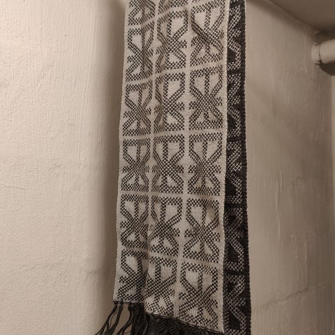 Makian kaulaliina, 100% merinovillaa. Unisex. Kaulaliina on juuri asianmukaisesti pesty. Kunto hyvä.
