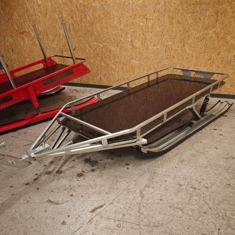 Vedenkestävä puulevy, hyvät sidonta mahdollisuudet, kunnon iskunvaimentajat sekä korkeussäädettävä aisa joka mahdollistaa vetämisen vanhemmilla sekä uudemmilla kelkoilla.