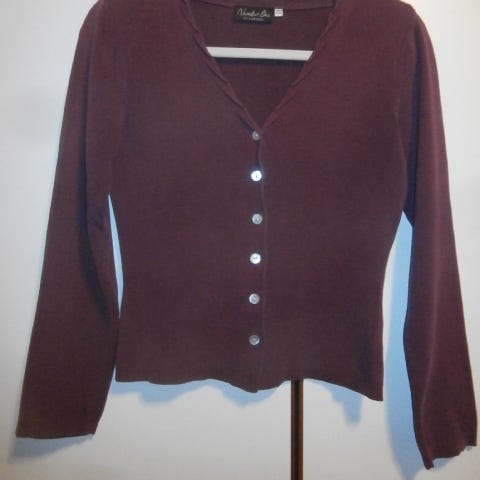 Comma-merkkinen violetti neuletakki kietaisumallia, lämmintä villasekoitetta.